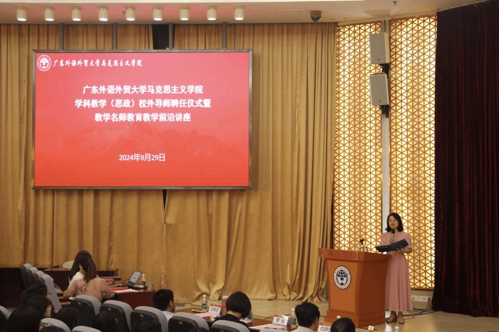 9月29日晚,伟德国际1946学科教学(思政)校外导师聘任仪式暨教学名师教育教学前沿讲座在大学城校区八角楼报告厅顺利举行。广州市执信中学政治正高级教师洪少帆、广东实验中学政治高级教师谢伟斌、广州市第二中学政治高级教师邹琳、广州市华侨外国语学校中学政治高级教师陆雪花、广州市实验外语学校中学政治高级教师吕晓波、闫辉、伟德国际1946,Bevictor伟德实验中学政治高级教师白群峰等7位老师受聘为伟德国际1946学科教学(思政)校外导师。学院党委书记麦培年、院长毛国民出席活动,院长助理雷艳芝主持仪式,学科教学(思政)校内导师代表罗佳、学院办公室主任龙世邦、研究生工作教务科研秘书徐笑玥以及2023级、2024级全体研究生参加活动。