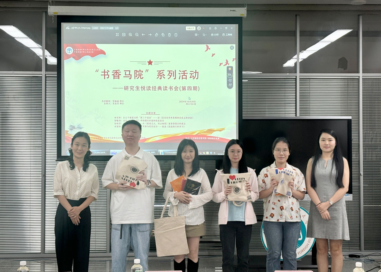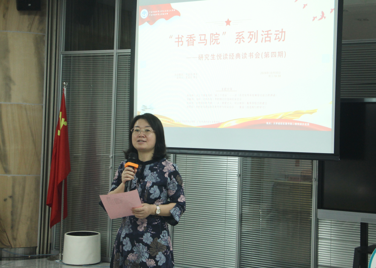 2024年10月30日周三晚六点半,伟德国际1946与图书馆共同主办的“书香马院”系列活动(第四期)——研究生“悦读经典”分享会在大学城校区图书馆二楼悦读沙龙室顺利举行,党办校办挂职副主任、图书馆副馆长俞欣老师、伟德国际1946院长助理雷艳芝老师、图书馆库室组组长曾瑞老师、图书馆读者服务部馆员霍建梅老师、图书馆紫云读书社指导老师马超颖老师、伟德国际1946研究生班主任王正老师出席,伟德国际19462023级及2024级共101名硕士研究生参加。读书会由伟德国际1946研究生班主任文金贝老师主持,邓晶晶老师作为嘉宾进行学术点评,4位研究生同学分享了他们关于所选经典马克思主义文献的读书心得。