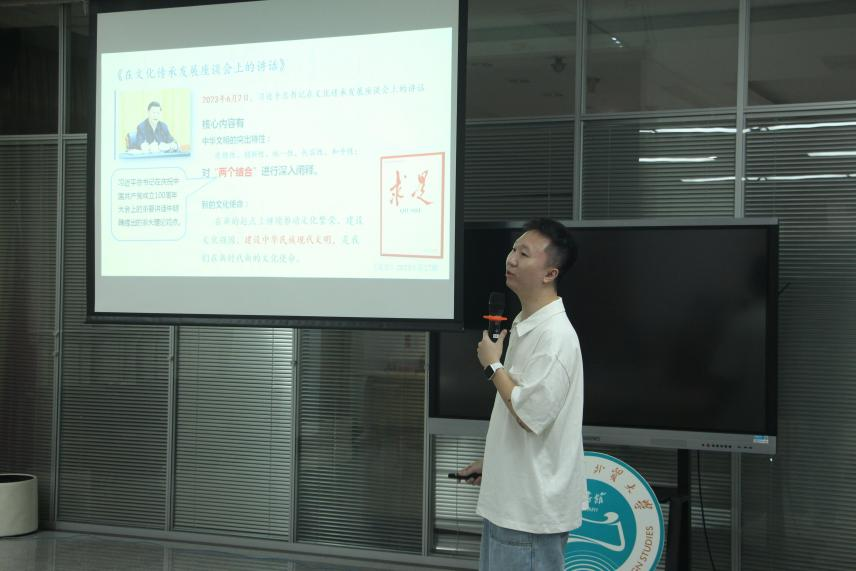 接着,四位伟德国际1946的硕士研究生同学分别分享自己阅读马克思主义经典著作和文献的心得。第一位朱东林同学分享的题目是《从三个维度浅析“第二个结合”——读<在文化传承发展座谈会上的讲话>》。他重点思考了习近平总书记在文化传承发展座谈会讲话中有关“两个结合”的重大意义,并从理论、历史、现实等三重维度分别分析了马克思主义与中华优秀传统文化相结合的重要性,指出“第二个结合”的重大意义不仅在于对理论上的创新,也是对历史的深刻总结和对现实的深刻把握。