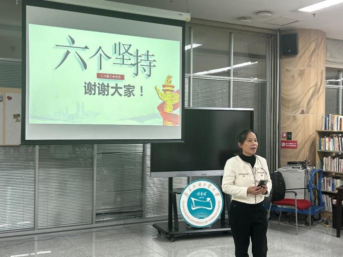 宣讲过程中,主讲人结合PPT展示,详细阐释了“六个坚持”的具体内容,包括坚持党的全面领导、坚持以人民为中心、坚持守正创新、坚持以制度建设为主线、坚持全面依法治国和坚持系统观念。她们指出,这些原则是党的二十届三中全会精神的重要组成部分,对指导未来改革发展具有纲领性作用。