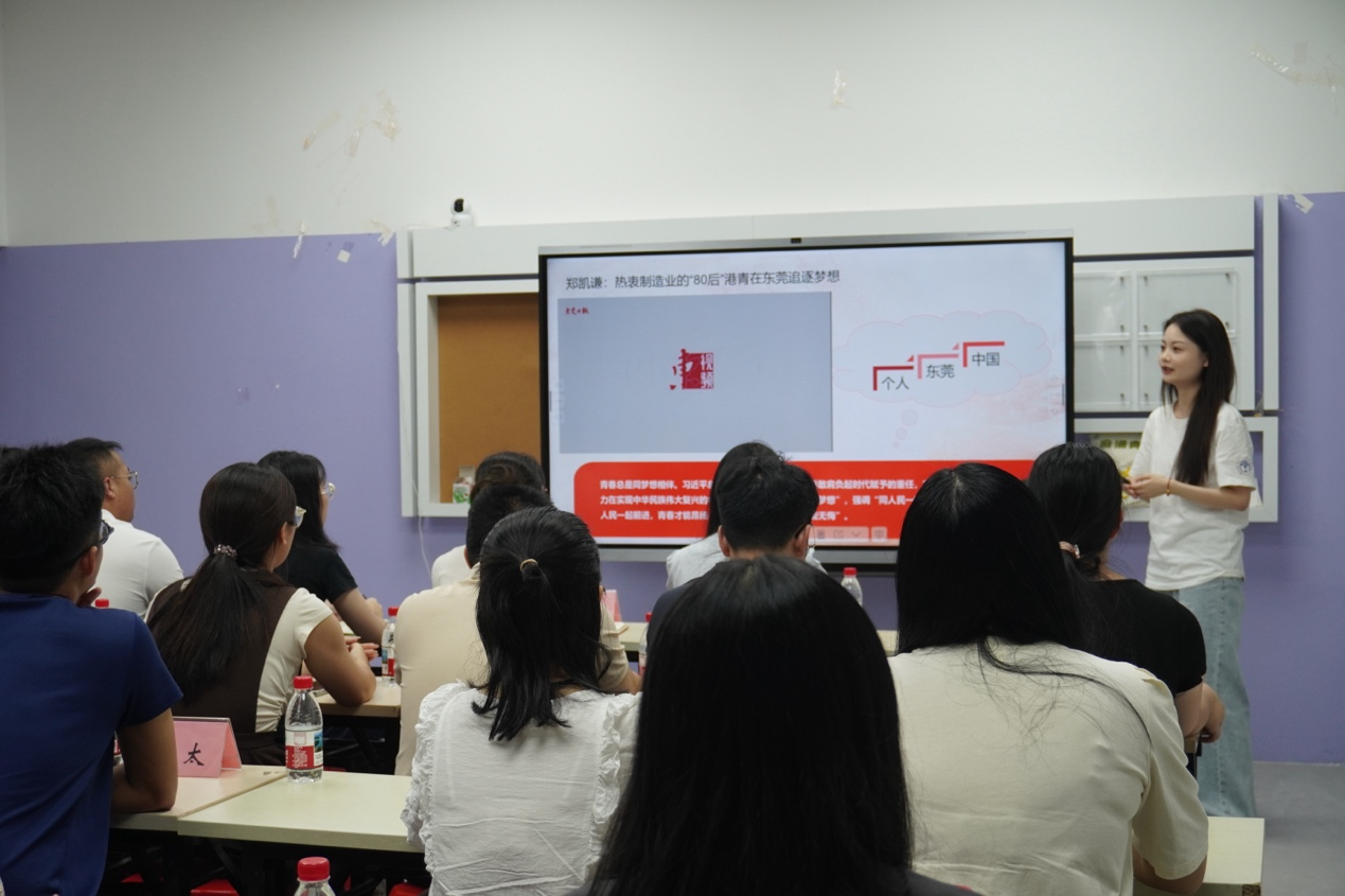 当日下午,突击队来到麻涌镇青年人才驿站。宣讲人刘荣洁围绕 “青年逐梦” 主题,通过案例与数据,剖析中国梦的内涵与实现路径,阐述国家、城市与个人梦想的同频共振。她指出,东莞作为国家战略落地的鲜活样本,其经济、文化、社会、生态领域的成就,为青年逐梦提供广阔舞台,而个人梦想的实现也将为城市与国家发展注入活力。