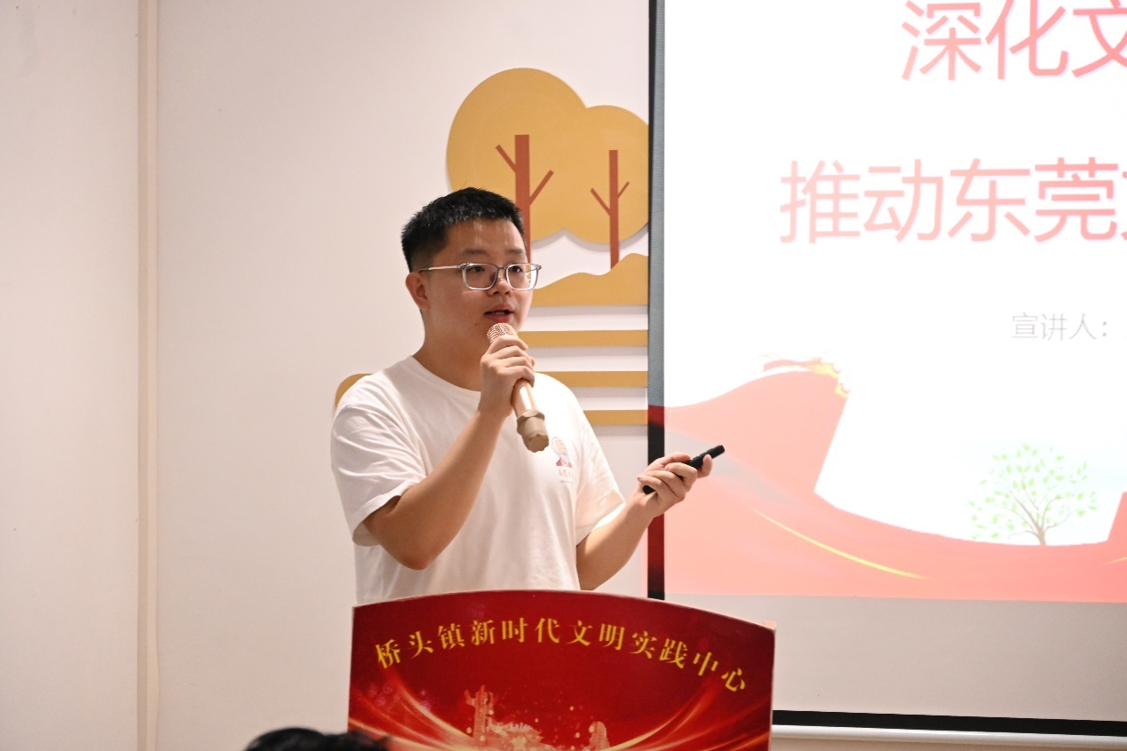 针对单位青年党团员,突击队成员带来了《红色东莞:东江纵队的烽火记忆》《深化文化体制机制改革,推动东莞文艺事业高质量发展》等主题宣讲。通过讲述东江纵队的英雄事迹,传承红色基因,引导青年党团员牢记初心使命;结合东莞文化事业发展的实际案例,阐述文化体制机制改革的重要性,鼓励青年立足岗位,积极服务群众,为“百千万工程”贡献青春力量。