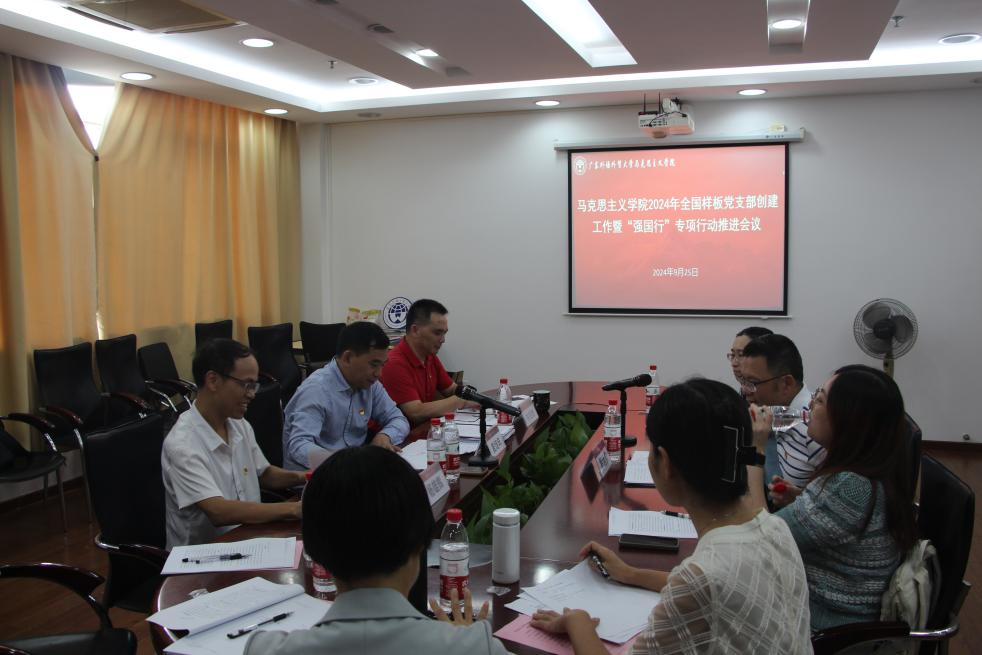 为深入学习贯彻党的二十届三中全会精神,推动学院纲要党支部全国样板党支部创建工作和“强国行”专项行动深入有效开展,学院党委于2024年9月25日下午在白云山校区学院会议室召开2024年全国样板党支部创建工作暨“强国行”专项行动推进会。学校党委组织部副部长杨雄辉、学院党委组织员林绍雄、学院党务秘书王玥馨以及纲要教学部党支部全体支委和党员代表与会。会议由学院党委书记麦培年主持。