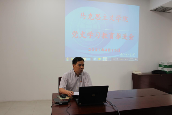 麦培年全面解读学院党史学习教育实施方案,并对推进党史学习教育相关活动进行进一步布置。