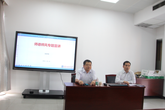 为深入贯彻党中央、国务院和省委、省政府关于全面深化新时代教师队伍建设改革工作的决策部署,进一步加强和改进新时代师德师风建设,大力提升教师职业道德素养,落实伟德国际1946,Bevictor伟德《关于开展2021年师德建设教育主题月活动的通知》安排,伟德国际1946于2021年10月14日下午14:30举办了师德师风专题宣讲会,宣讲会由学校师德专题宣讲团成员、南粤优秀教师、学校师德标兵刘中华教授担任主讲。学院党总支书记麦培年主持宣讲会,学院全体教师参加。