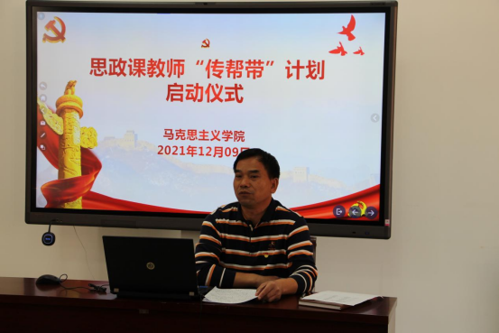 对此,麦培年提出三点意见:第一,高度重视,提高政治站位。要深刻领会习近平总书记办好”思想政治理论课关键在教师”的重要论述,从“为党育人、为国育才”的初心使命出发,从落实立德树人根本任务出发做好“传帮带”工作。第二,希望导师充分发挥“传帮带”作用,把新教师培养当成份内之事,通过经验上的”传”、工作上的”帮”、思想上的”带”,助力新教师夯实理论功底、坚定信仰、打开工作新局面。第三,希望新教师充分利用“传帮带”的机制,抓住机会,加强学习,不断提升教学科研能力,精心教学,潜心科研,一步一个脚印,稳扎稳打,尽快成长为优秀教师。