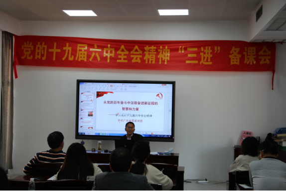 谢迪斌院长以“从党的百年奋斗中汲取奋进新征程的智慧和力量”为主题,与全院教师分享学习党的十九届六中全会精神的体会。谢迪斌院长指出:2021年是党史学习教育年,认真学习和推动党的十九届六中全会精神“三进”是高校思想政治教育的一项重要任务。