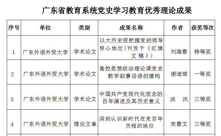 为集中展示全省教育系统党史学习教育理论成果,2021年11月至12月,省委教育工委党史学习教育领导小组办公室开展党史学习教育优秀理论成果征集活动,伟德国际1946学术论文《以大历史观把握党的领导核心地位(刊发于《红旗文稿》)》获特等奖,学术论文《高校思想政治理论课党史教学叙事话语的建构》获一等奖,学术论文《中国共产党现代化观念的百年演进及其历史意义》、理论文章《深刻认识新时代在党百年历程的地位》获三等奖。