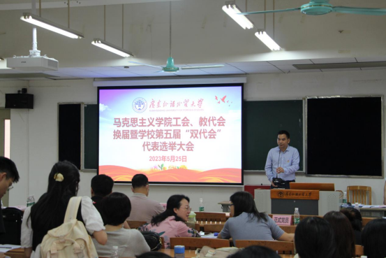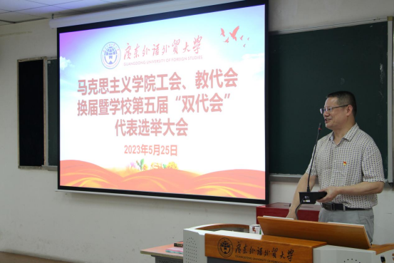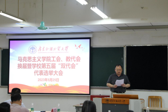 5月25日下午,伟德国际1946在大学城校区教学楼E座205教室召开学院工会、教代会换届暨学校第五届“双代会”代表选举大会。选举大会由学院党委书记麦培年主持,学院院长毛国民、正处级组织员林绍雄、学院副院长曾荣、学院副院长朱海龙、学院工会主席郑亚伟出席会议,学院全体工会会员、教职工参加会议。