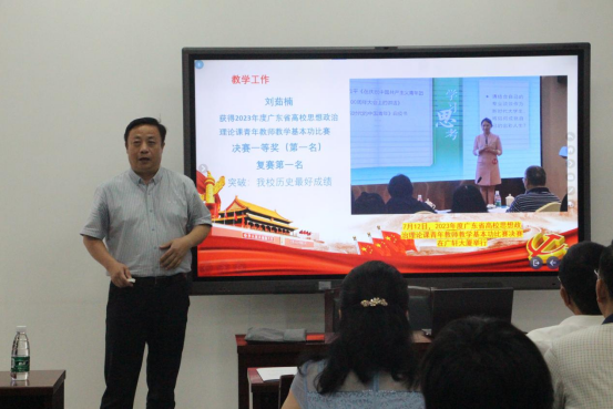 学院院长毛国民以“‘1+1+5’学院建设新征程”为题,从暑假工作、新学期重点、“知己知彼”和学院建设新征程等四个方面,介绍了学院在上学年取得的一系列成绩,并就暑期研学、研修活动做了回顾。他提出,新学期重点工作主要是博士点申报和重点马院建设,要求各位教职工做到“知己知彼,百战不殆”,强调目前的形势极有利于马克思主义理论学科的建设和发展,希望学院全体教师共同不懈努力,一起向前迈进。