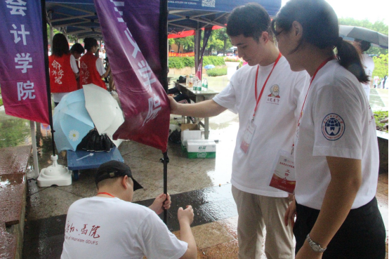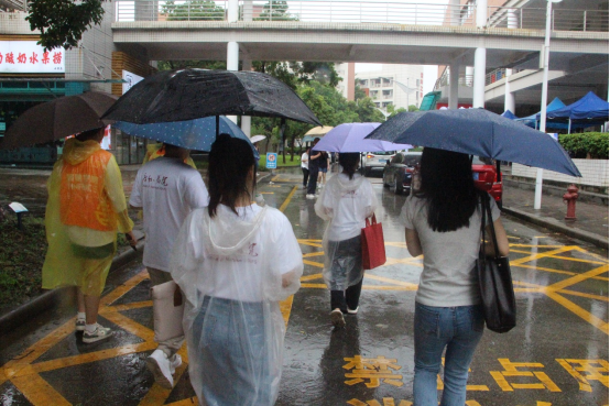 迎着风雨,党员先锋岗的志愿者们坚守迎新岗位,暴雨下不懈怠,疲劳中不喊累,确保新生信息核对无误、人证匹配齐全、发放物资和礼物、帮助搬运行李、拍摄纪念照片等各项流程运转顺利,做新生初入校园的引路人和暖心人。从学校大门到各宿舍门口,学校的各个角落都活跃着学院党员志愿者们的身影。
