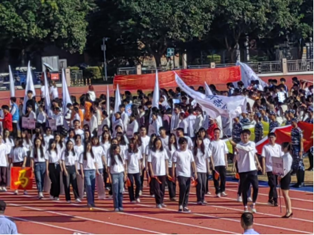 11月24日上午,2023年伟德国际1946,Bevictor伟德运动会在白云山校区田径场拉开序幕。现场氛围热闹非凡。在激昂的音乐中,马院师生迈着自信的步伐,手举标语,以“以梦为马,剑指未来”的响亮口号向全校师生展现了饱满的热情,诠释了昂扬的斗志。
