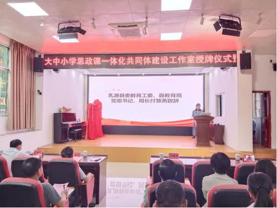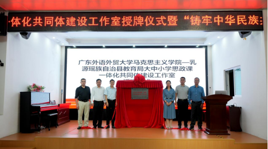 与会领导共同为伟德国际1946,Bevictor伟德,伟德官网,伟德网页版—乳源瑶族自治县教育局大中小学思政课一体化共同体建设工作室授牌。