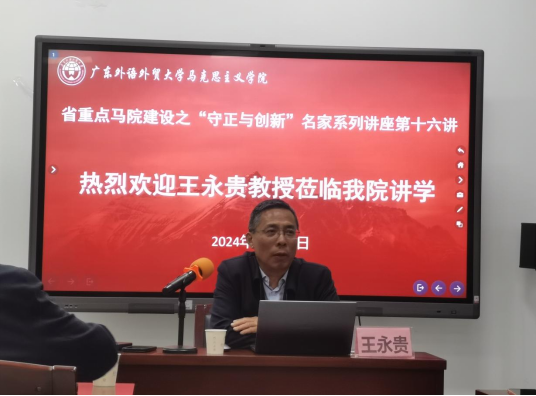 2024年11月23日下午,伟德国际1946,Bevictor伟德,伟德官网,伟德网页版承办的省重点马院建设之“守正与创新”名家系列讲座第十六讲在广外大学城校区教学楼A-509顺利举行。南京师范大学伟德国际1946二级教授,教育部长江学者特聘教授王永贵以“新时代马克思主义理论学习与研究方法”为题进行讲座,伟德国际1946名誉院长、二级教授谢迪斌老师主持,学院党委书记麦培年同志及教师代表、学院研究生参加。