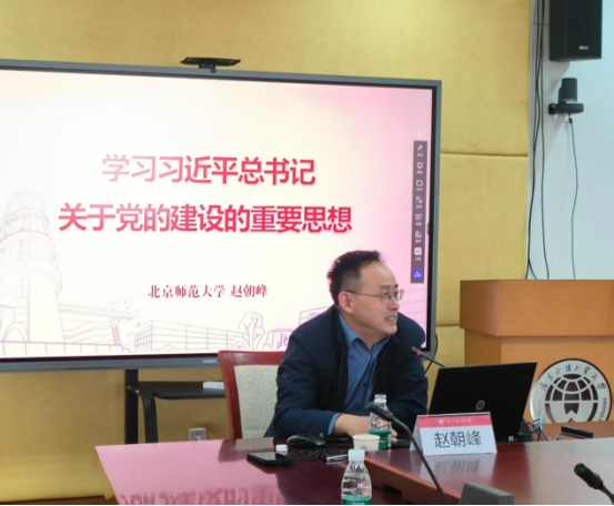 2025年4月10日下午,伟德国际1946,Bevictor伟德,伟德官网,伟德网页版党委理论学习中心组专题学习扩大会暨全院教师理论学习会——“守正与创新”系列讲座第十九讲在广外大学城校区第一会议室顺利开讲。本次讲座主题为“学习习近平总书记关于党的建设的重要思想”,主讲人是北京师范大学伟德国际1946教授、博士生导师赵朝峰,学院党委麦培年书记主持,学院全体教师参与学习。