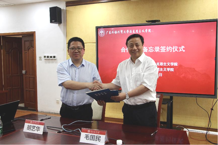 胡艺华教授与毛国民院长进行伟德国际1946,Bevictor伟德,伟德官网,伟德网页版与湖南农业大学伟德国际1946合作共建备忘录签约仪式。