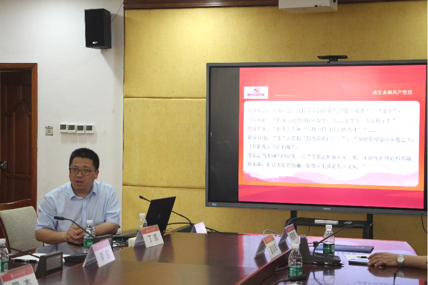 随后,他围绕“蒋先云的红色初心为什么会感天动地”的主题,以历史维度和现代视角剖析蒋先云烈士的优秀品质。他指出,蒋先云烈士永葆初心的精神值得当代青年传承和发扬。他引用了蒋先云烈士的名言:“头可断而共产党籍不可牺牲”,激励同学们要坚定理想信念,永远忠于党和国家的事业。