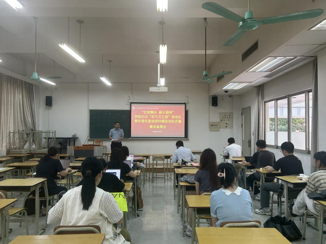 7月3日下午,学院党委书记麦培年、副院长雷艳芝,以及洪汛、高琦、龙世邦等老师共同参与突击队青年理论宣讲进村镇启动仪式暨集体备课会,为提升活动宣讲质量精准把脉。会上,各位领导老师聚焦宣讲主题的时代性、框架结构的逻辑性及讲解表达的生动性,展开深入细致的研讨。针对宣讲中可能存在的重点不突出、案例不鲜活等问题,指导老师结合“三下乡”活动的实践要求与受众特点,提出一系列建设性建议,也鼓励宣讲员在讲解方式上融入鲜活案例与互动环节,增强宣讲的吸引力和感染力。此次集体备课会为“三下乡”宣讲活动的完善提供了有力支撑,有助于推动宣讲内容更接地气、形式更受欢迎,为后续活动的顺利开展奠定了坚实基础。