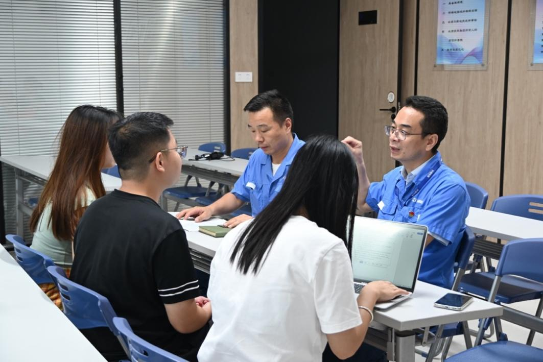 下午,突击队走进中兴瑞电子科技公司。朱勇先同学在《解码新质生产力——东莞的产业跃升实践》报告中,结合企业实际,深入浅出地讲解了人工智能、工业互联网等新兴产业的发展趋势,为企业转型升级提供了新思路。彭嘉欣同学则以《同筑梦·共前行:国家、东莞与你我的逐梦之路》为题,通过"小故事"阐释"大道理",将国家战略、城市发展与个人成长有机结合,激励企业员工在新时代新征程中勇担使命。