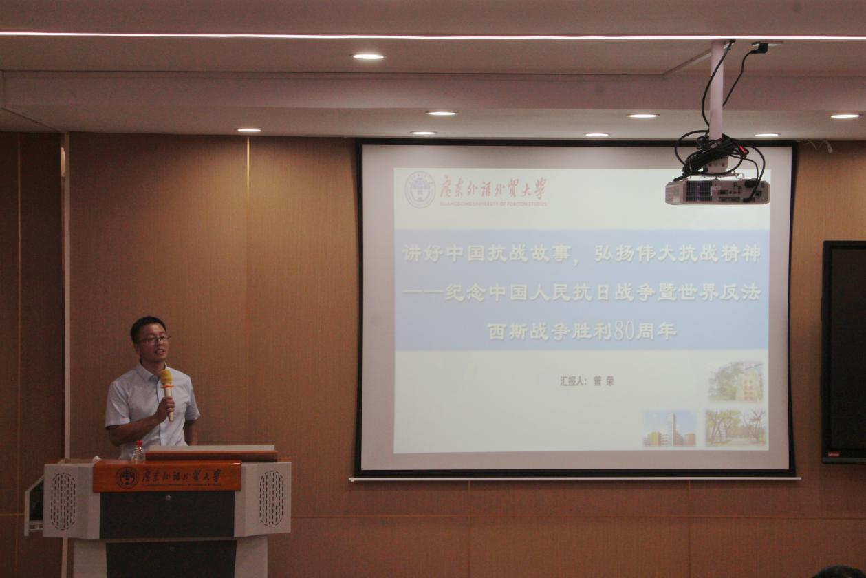 曾荣以《讲好中国抗战故事,弘扬伟大抗战精神——纪念中国人民抗日战争暨世界反法西斯战争胜利80周年》为主题,深入分析了抗战话语传播与党的文化领导权构建、抗战文化领导权向意识形态话语权的转变。他指出,抗战宣传工作有效打通了抗战话语传播与党的文化领导权构建之间的内在联系,使得抗战宣传、群众发动与文化发展在民族化、大众化等话语主题的传播中逐渐融合。同时,他还剖析了国内话语权向国际话语权的构建路径。曾荣强调,九三阅兵不仅是“移动思政课”的生动教材,展现了抗战精神与国防力量,也是科技强军成果的展示,更加坚定了思政教师要用课堂传承红色基因,为民族复兴培育兼具家国情怀与创新能力的时代新人。