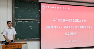 2025年9月16日,伟德国际1946,Bevictor伟德,伟德官网,伟德网页版(以下简称“马院”)举办“学在马院暨60周年校庆校友论坛”,邀请四位在不同岗位深耕的优秀校友重返校园,与在校学子分享成长经验、共话职业发展。论坛由学院党政办公室主任、辅导员龙世邦主持,学院党委书记麦培年出席并作总结讲话。