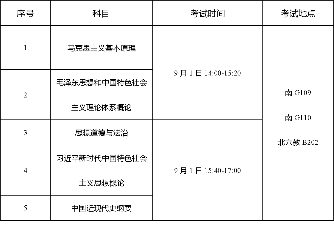 1、思政公共课的补缓考时间为2024年9月1日下午14:00开始。南北校同时开考。考场详细学生名单请参考附件。